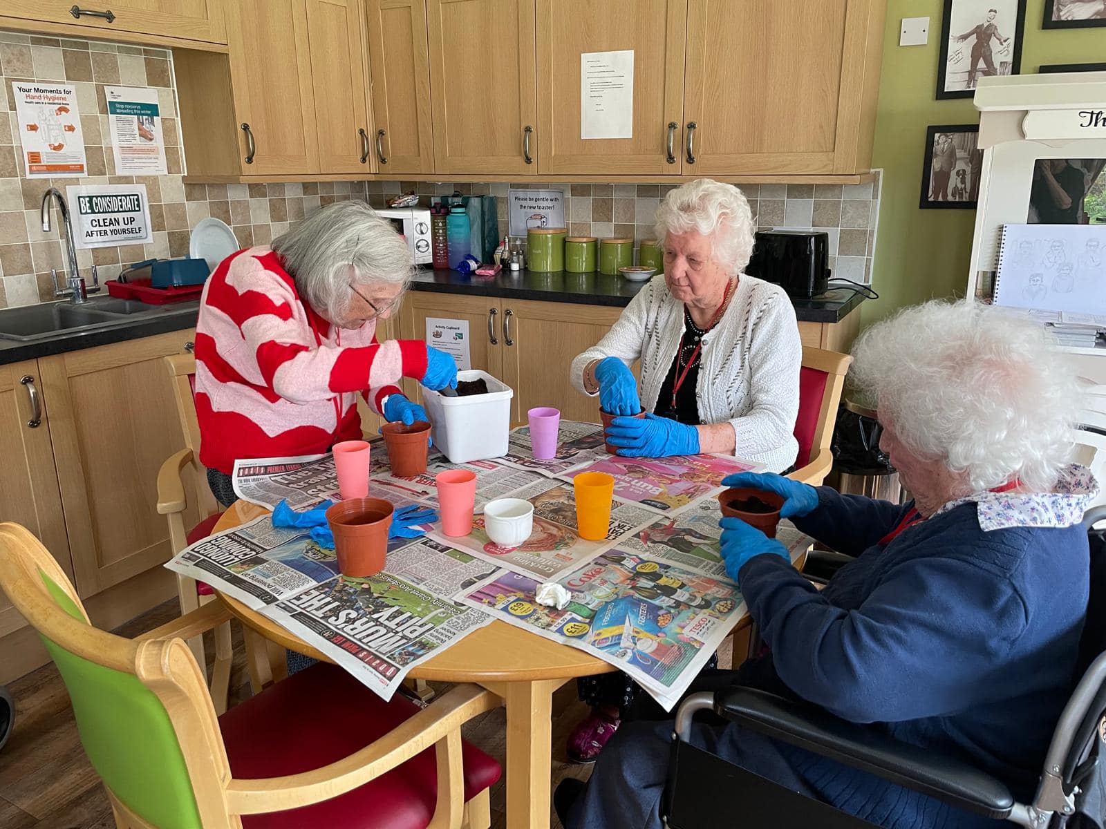 Rossi our pat dog came back for more cuddles from our residents (and staff) and our first Quiz night since 2020 was a fantastic success raising over £250 for our residents fund. We got green fingers and have been planting sunflowers, herbs and many flowers in anticipation for a lovely summer in our garden and our downstairs floor renovations began.