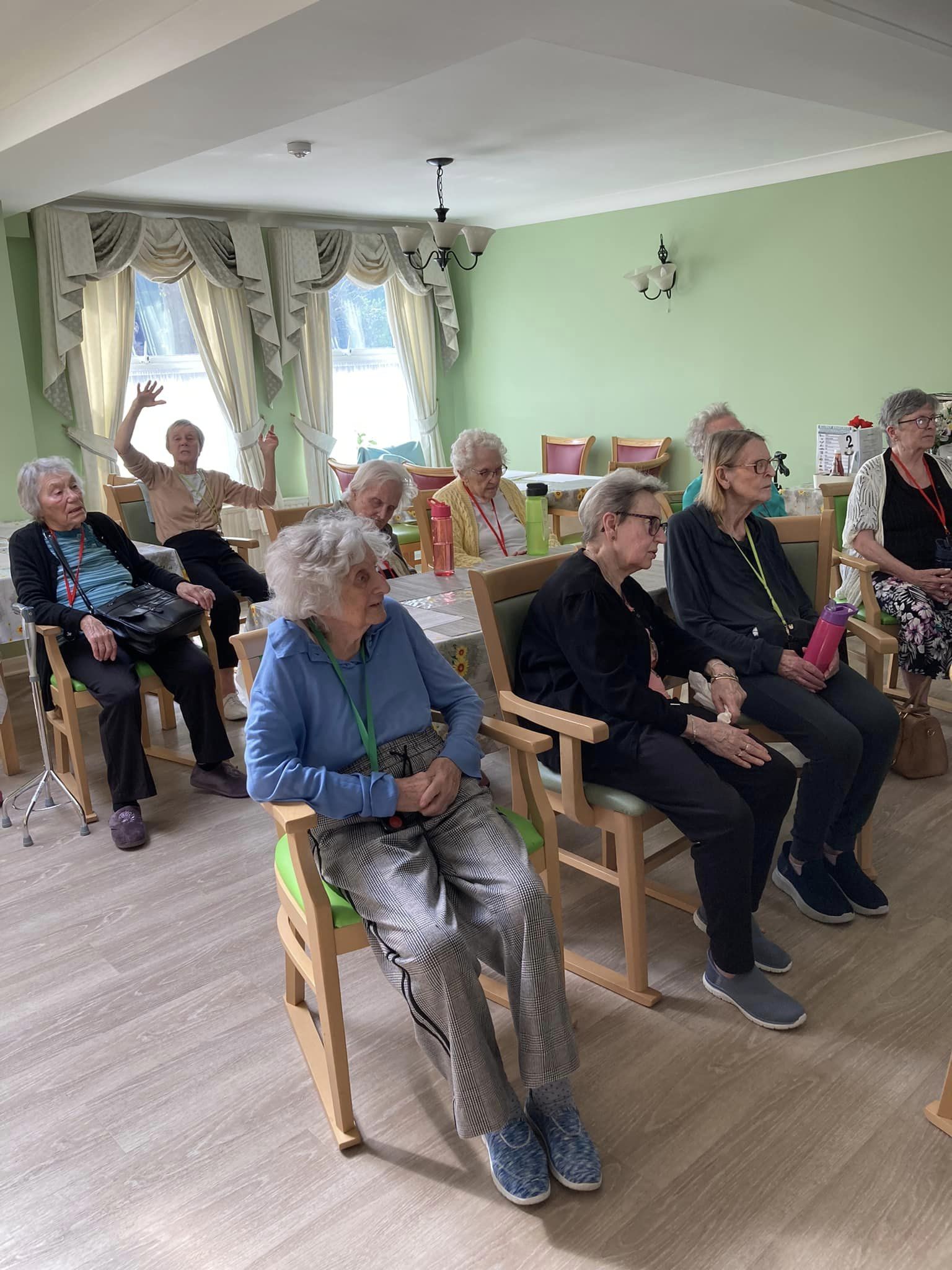 We finished the week with chair exercises and a good old fashioned singalong. This week we have a very busy one with a live singer, therapy dog and much more.